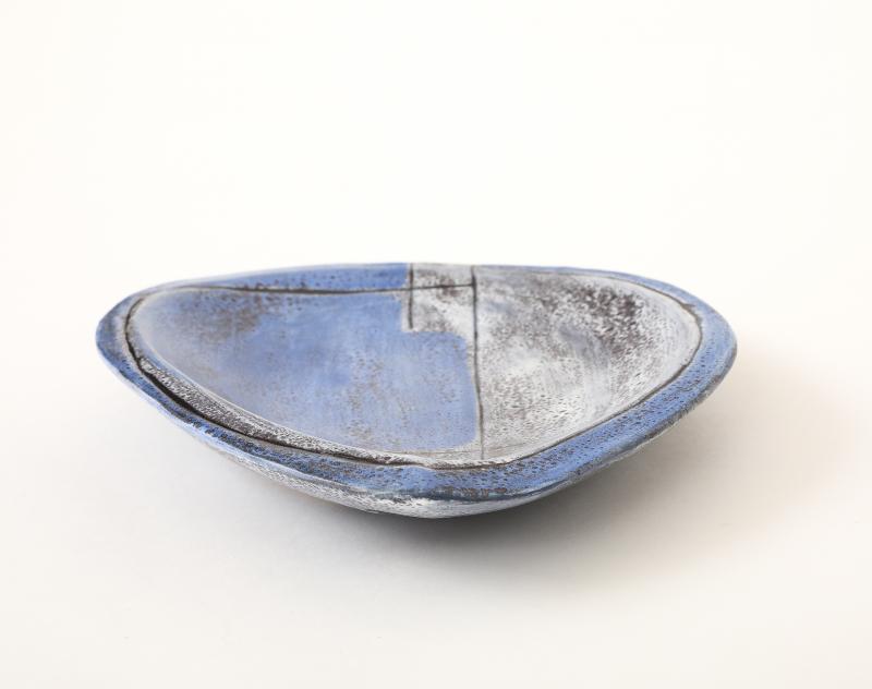 Ceramist Jacques Blin, was born in, Pierrefonds France in 1920. His university degree was in the aeronautics and automotive field. Initially he taught industrial drawing and worked as an engineer. But by 1949 he abandoned his aeronautics and began to make jewelry and lamps from his home.